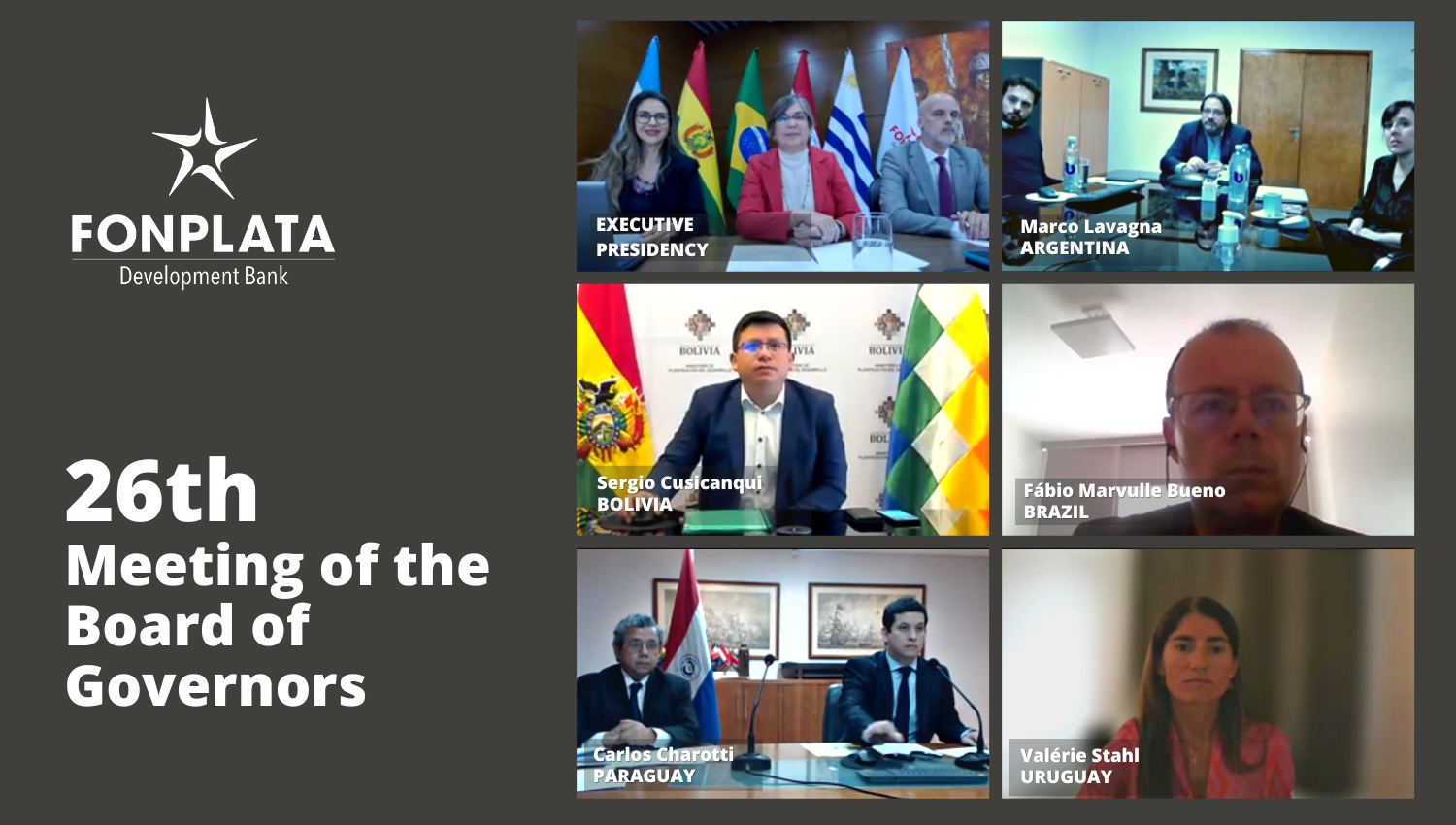 All member countries of FONPLATA, Argentina, Bolivia, Brazil, Paraguay, and Uruguay, were present in the remote meeting, in which FONPLATA's Executive President, Luciana Botafogo, and the elected president of the Board, Sergio Cusicanqui, thanked Argentina for its work while holding the 2022-2023 Presidency.