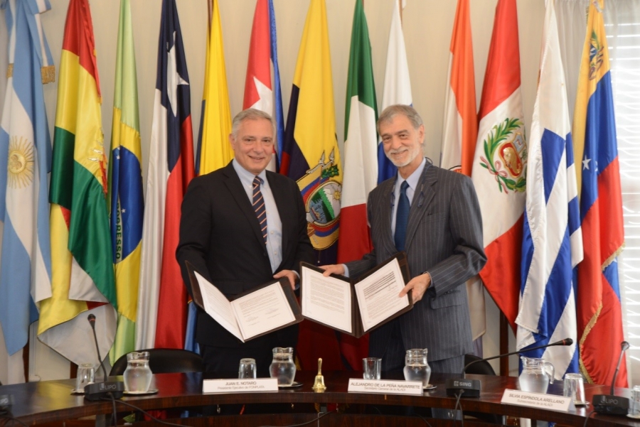Hoy, en la sede de la Asociación Latinoamericana de Integración (ALADI), se firmó la Carta de Acuerdo entre el Fondo Financiero para el Desarrollo de la Cuenca del Plata (FONPLATA) y la Secretaría General de la ALADI.