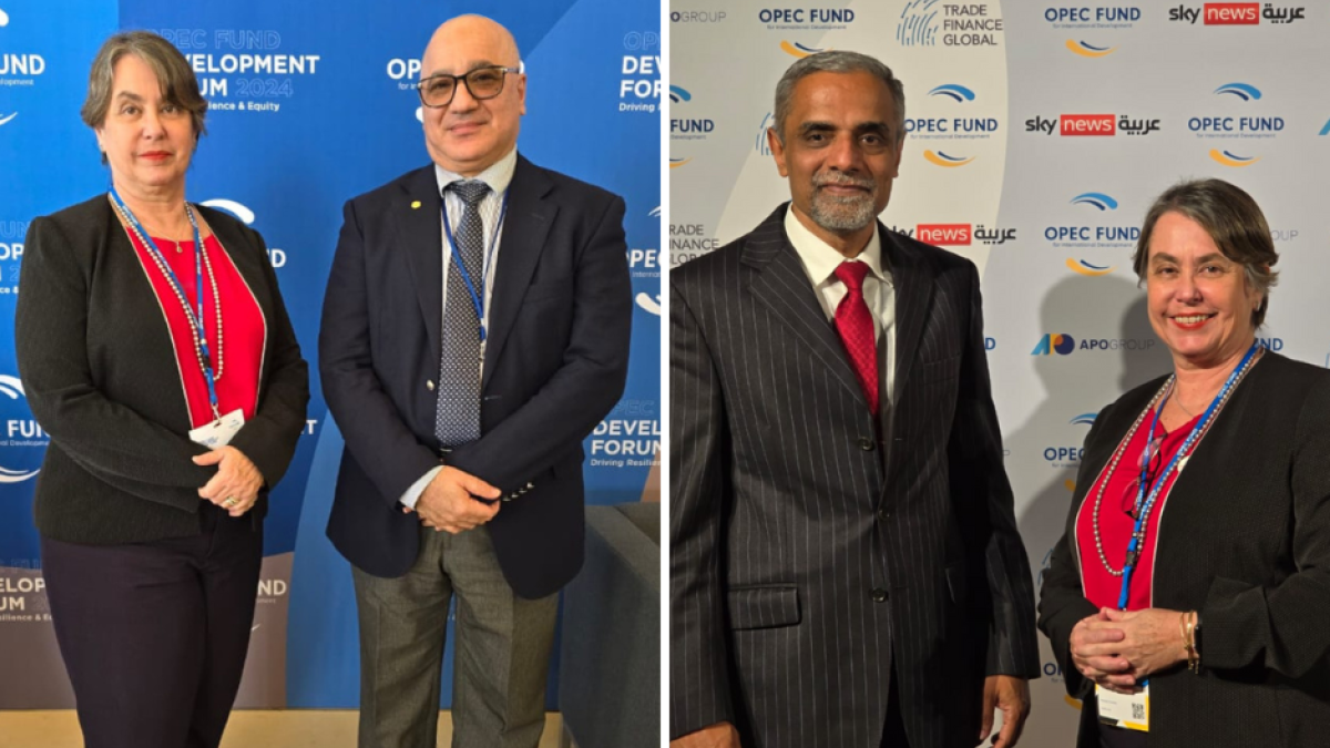 Durante el Foro de Desarrollo del Fondo OPEP para el Desarrollo Internacional, celebrado en Viena, Austria, entre el 24 y 25 de junio, una delegación de FONPLATA, liderada por la Presidente Ejecutiva, Luciana Botafogo y conformada por el Vicepresidente de Desarrollo Estratégico, Oscar Llamosas y el Especialista Senior en Cooperación Técnica, José Lupo; sostuvo reuniones con diferentes autoridades de organismos internacionales y principalmente fondos árabes, con el objetivo de establecer nuevas alianzas.