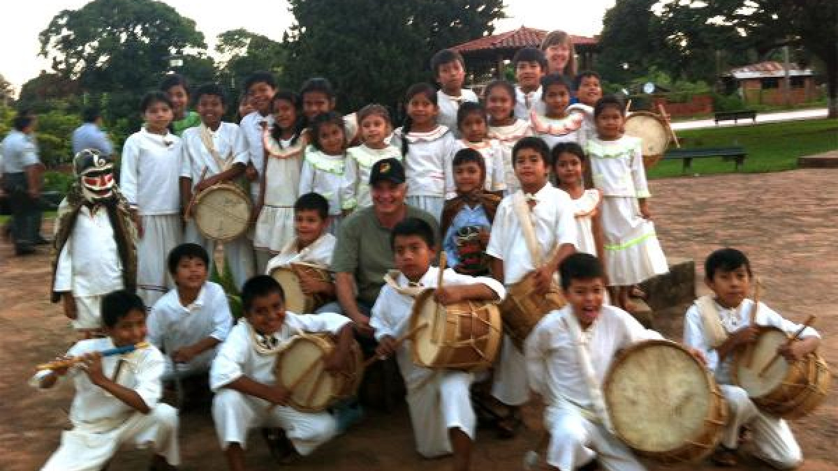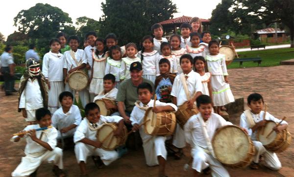 Durante su visita a Santiago de Chiquitos fue agasajado por lo niños con cantos y bailes típicos de la región en agradecimiento por el apoyo brindado de FONPLATA al Festival Internacional.