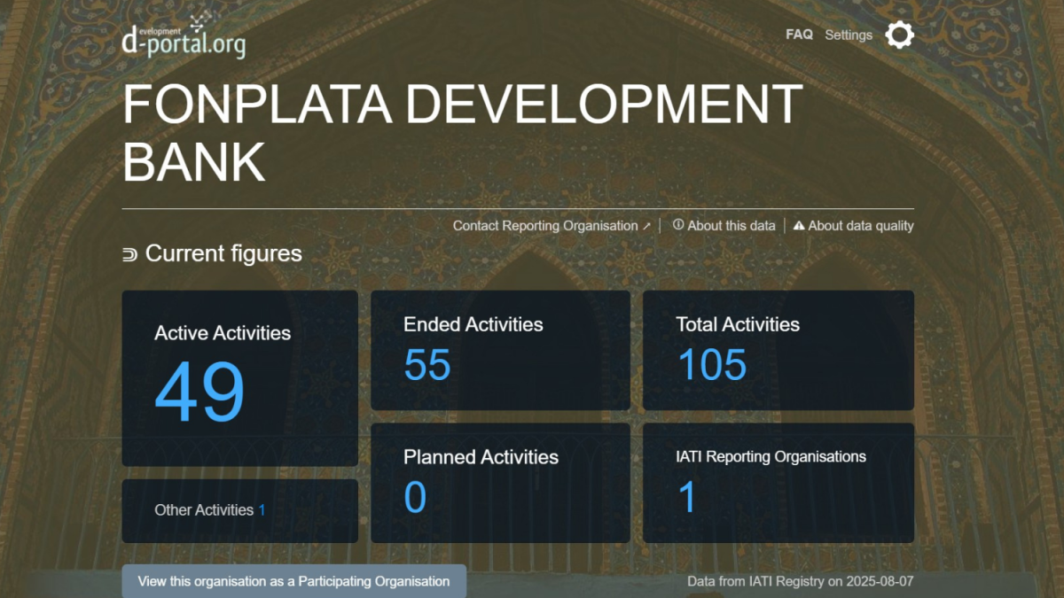 FONPLATA financia proyectos de desarrollo e integración regional en sus cinco países miembros —Argentina, Bolivia, Brasil, Paraguay y Uruguay— con un enfoque en territorios fronterizos y zonas con menor acceso a financiamiento. La adhesión a IATI permite no solo fortalecer sus mecanismos internos de seguimiento y evaluación, sino también contribuir a una mejor articulación con sus socios estratégicos.