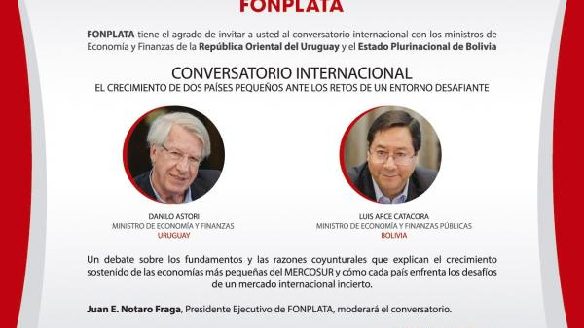 En un encuentro académico organizado por FONPLATA, los Ministros de Economía de Bolivia y Uruguay expondrán sobre los fundamentos del sostenido crecimiento de las economías más pequeñas del MERCOSUR y los retos que éstas enfrentan hoy ante una coyuntura desafiante.