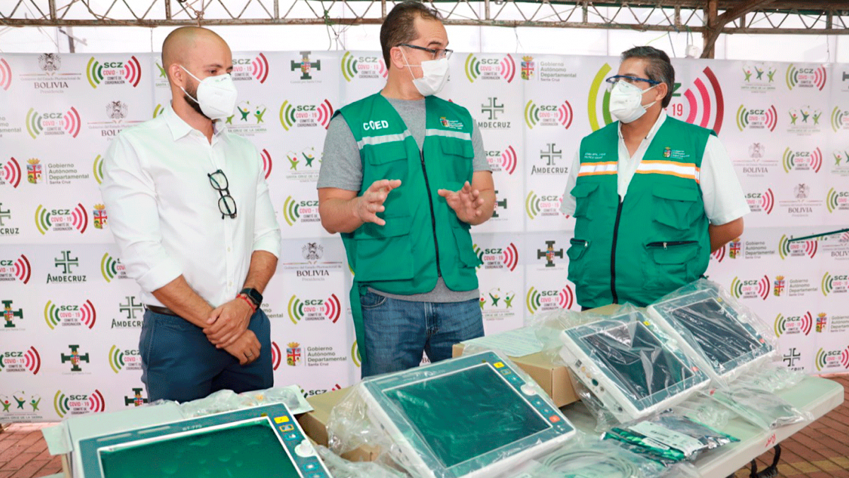 En total esta primera etapa de la donación implicó la entrega de cuatro monitores multiparamétricos para terapia intermedia, dos destinados al Hospital de la Pampa y, los otros dos al Hospital San Juan de Dios. Del acto participaron el Jefe de la Unidad de Cooperación Técnica de FONPLATA, José Carlos Lupo, y el Secretario General de la Gobernación de Santa Cruz, Roly Aguilera.