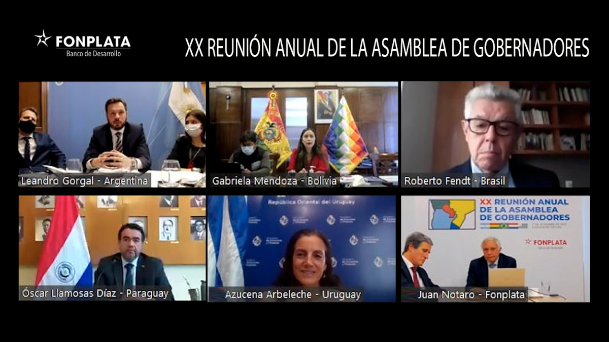 La Asamblea se realizó de forma virtual y participaron las autoridades representantes de todos los países miembros de FONPLATA: Leandro Gorgal, Subsecretario de Relaciones Financieras Internacionales de Argentina; Gabriela Mendoza, Ministra de Planificación del Desarrollo de Bolivia; Roberto Fendt, Secretario Especial de Comercio Exterior y Asuntos Internacionales del Ministerio de Economía de Brasil; Óscar Llamosas Díaz, Ministro de Hacienda de Paraguay.