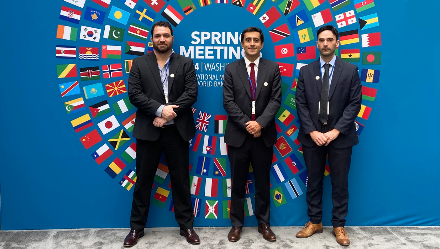 La delegación de FONPLATA, integrada por el Vicepresidente de Finanzas, Rafael Robles, el Jefe de Gestión de Recursos Financieros, Rodrigo Saráchaga y el Jefe de Análisis y Estudios Económicos, Matías Mednik, participó en las Reuniones de Primavera del Banco Mundial que se desarrollaron en la ciudad de Washington del 10 al 16 de abril.