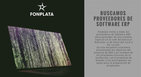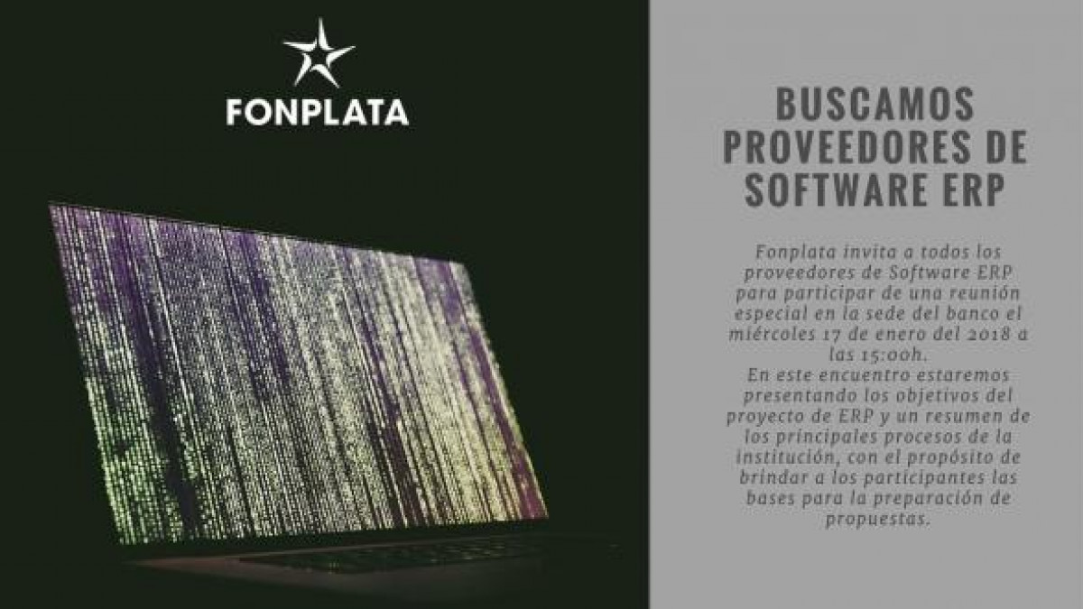FONPLATA invita a todos los proveedores de Software ERP para participar de una reunión especial en la sede del banco ubicada en el edificio Ambassador Business Center Piso 3, el miércoles 17 de enero del 2018 a las 15:00 hrs.