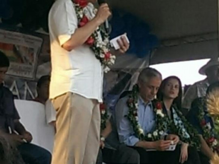 El Presidente Ejecutivo de FONPLATA, Juan E. Notaro Fraga, junto a la Gerente de Operaciones y Países, Denise Obara, y la Directora de Secretaría y Relaciones Institucionales, Mariana Prado, participaron del acto de inicio de obras de defensivos en Río Grande. (Santa Cruz, 19 de setiembre de 2015)...