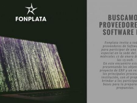 FONPLATA invita a todos los proveedores de Software ERP para participar de una reunión especial en la sede del banco ubicada en el edificio Ambassador Business Center Piso 3, el miércoles 17 de enero del 2018 a las 15:00 hrs. En este encuentro estaremos presentando los objetivos del proyecto de ERP...