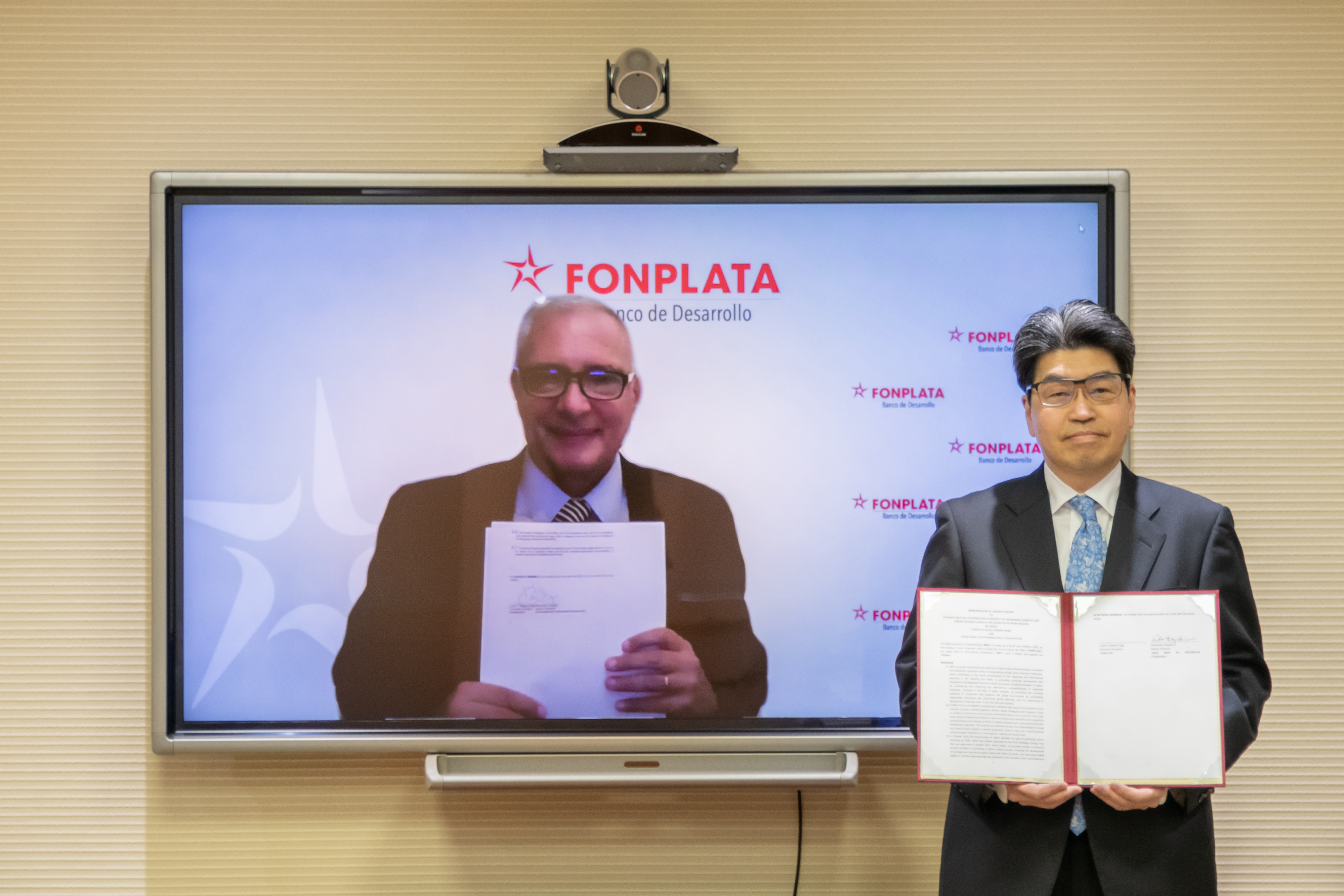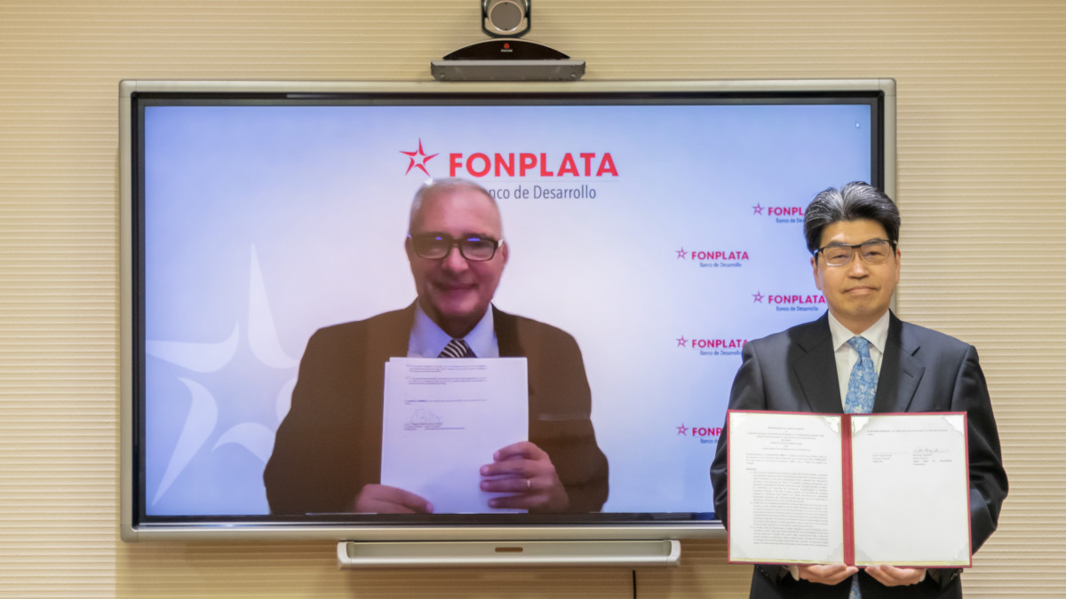 O Presidente Executivo do FONPLATA – Banco de Desenvolvimento, Juan E. Notaro, e o Governador do Banco Japonês para a Cooperação Internacional, Nobumitsu Hayashi, assinaram Memorando de Entendimento com o objetivo de melhorar a colaboração ativa no que diz respeito a investimentos de empresas japonesas na América do Sul, particularmente para promover projetos que contribuam para a descarbonização e o uso de energias renováveis.