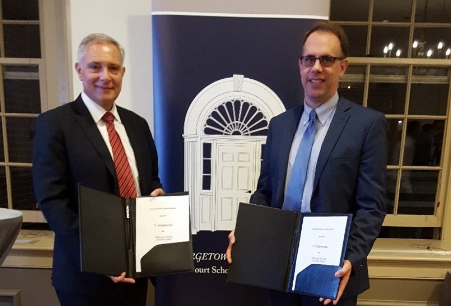 (Washington D.C., 5 de novembro de 2018) O FONPLATA assinou o Memorando de Entendimento com a Escola McCourt School of Public Policy, da Universidad de Georgetown, em Washington D.C. (EUA), que estabelece uma cooperação entre ambas as entidades para o desenvolvimento de atividades em áreas de mútuo interesse.