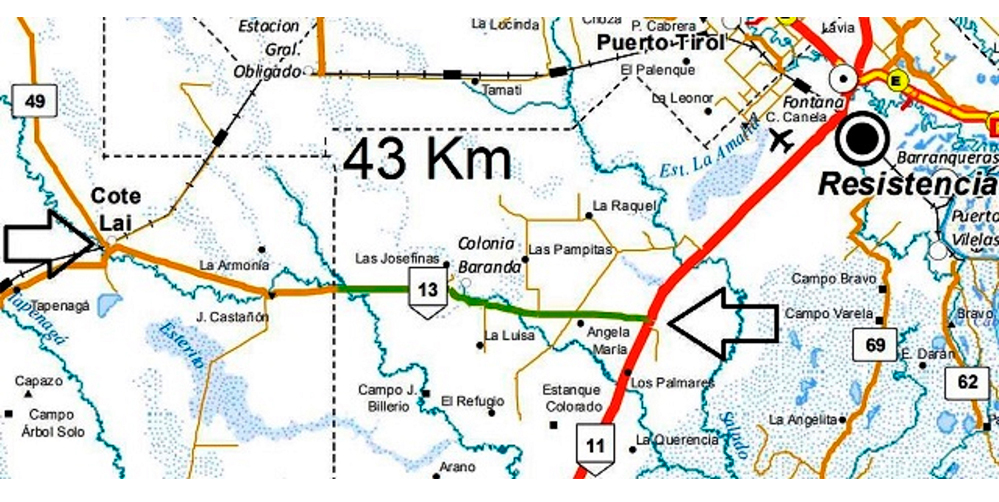 A operação também garantirá a conexão entre os municípios de Colonia Baranda e Cote Lai com a R.N.Nº11 e o tráfego permanente, independente das condições climáticas.